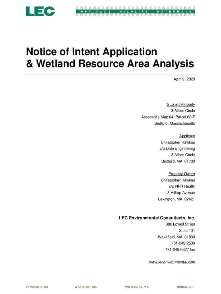 Get the free Notice of Intent Application & Wetland Resource Area Analysis