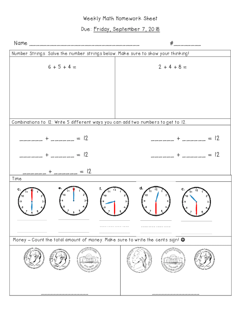 Get the free Weekly Math Homework Sheet Due: Friday, September 7 ...