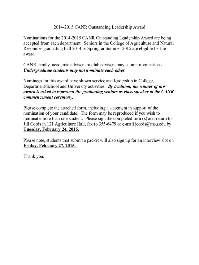 Nominations for the 20142015 CAN Outstanding Leadership Award are being