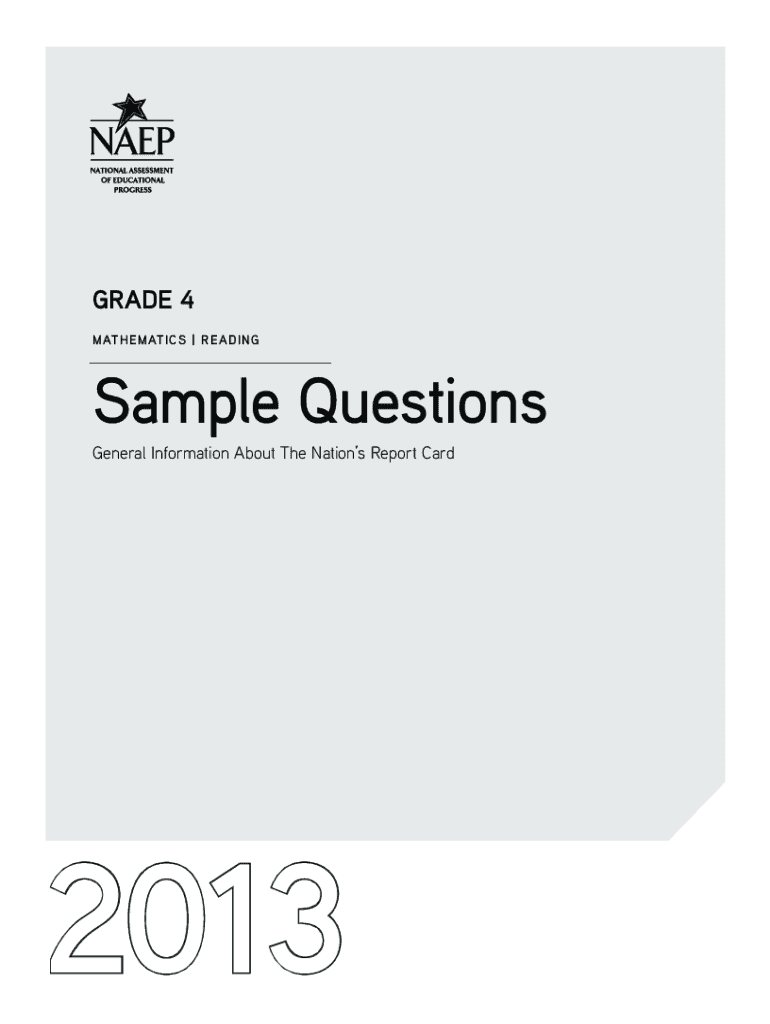 GRADE 4 M AT HEM ANTICS RE A DING Sample Questions General Information About The Nations Report Card2013Admin Schedule Line # from Session # P 7SECTION20134 2 11 2 3 4Grade 4P 7R1 R2 D1 RB1Reading