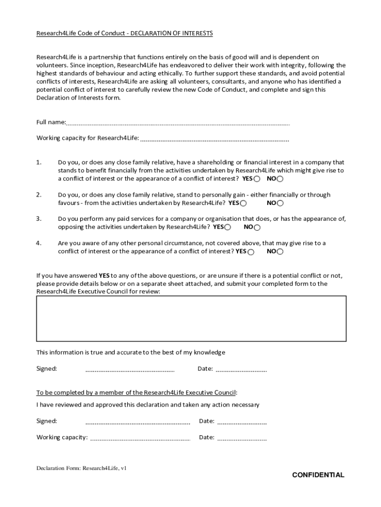 Research4Life Code of Conduct DECLARATION OF INTERESTS Research4Life is a partnership that functions entirely on the basis of good will and is dependent on volunteers. Since inception, Research4Life