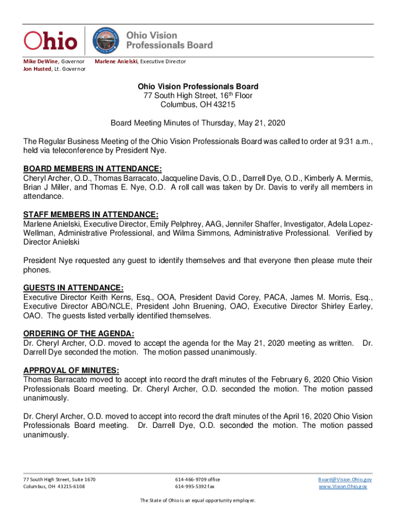 Jon Hosted, Lt. Governor Marlene Angels, Executive Director Ohio Vision Professionals Board