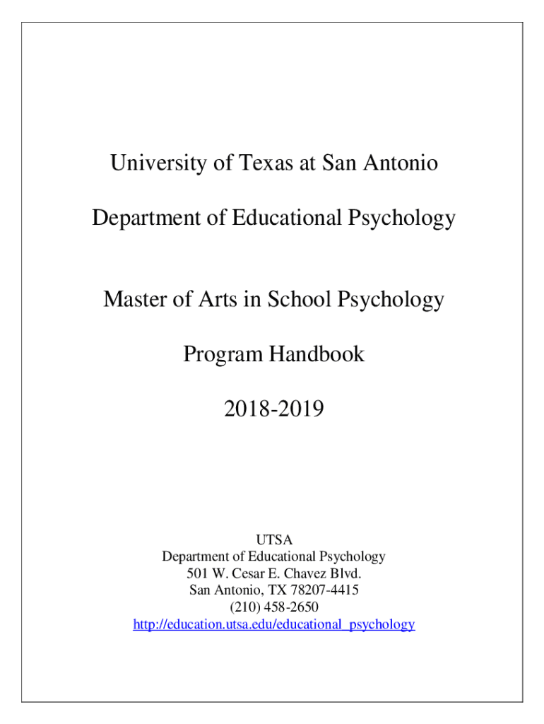 Get the free Department of Educational Psychology - UTSA College of ... - education utsa