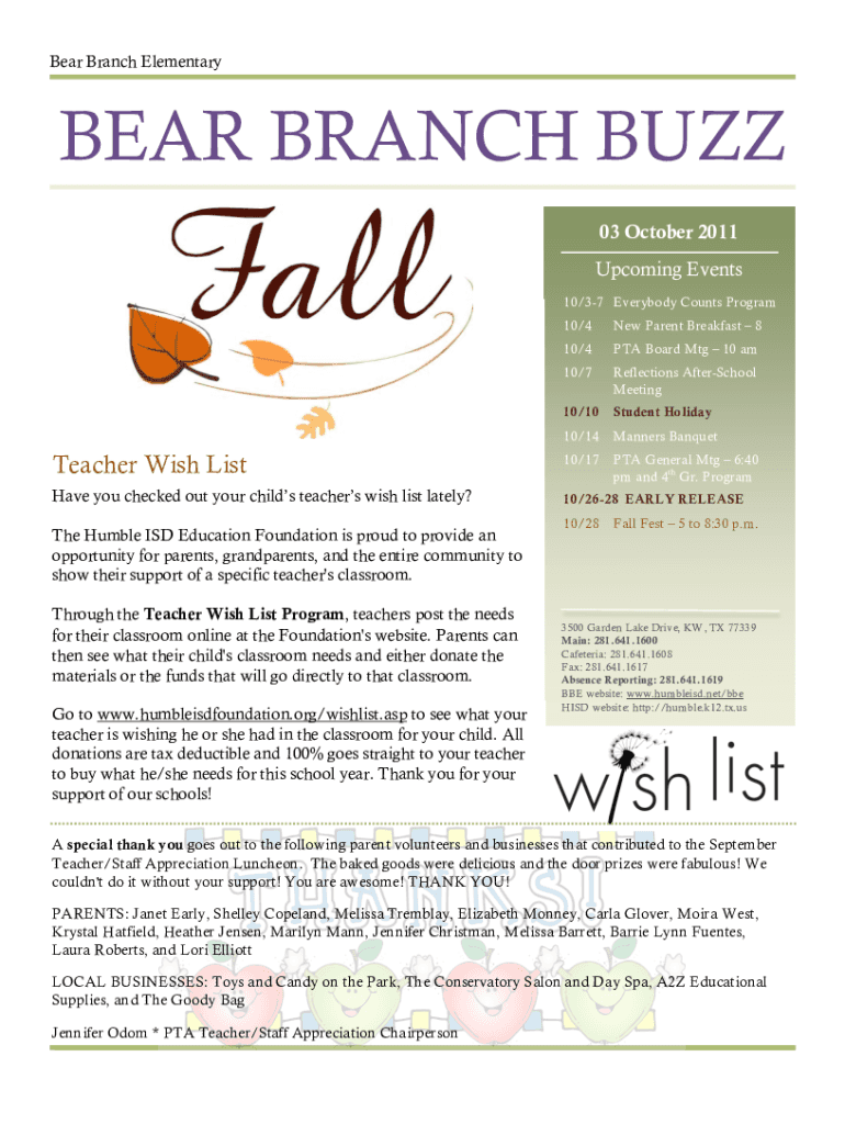 Get the free BEAR BRANCH BUZZ - humbleisd.net