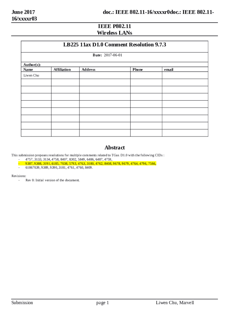 Before starting to fill out Regarding the state of Wi-Fi 6 / 802.11ax devices : hardware - mentor ieee Word form, be sure that you have prepared all the required information. That's a mandatory part, as long as some errors can trigger unpleasant consequences from re-submission of the entire blank and finishing with deadlines missed and even penalties. You should be really careful when writing down digits. At a glimpse, this task seems to be not challenging thing. Nevertheless, it is simple to make a mistake. Some people use such lifehack as saving everything in a separate file or a record book and then add it into documents' sample. Nevertheless, put your best with all efforts and provide accurate and genuine data in Regarding the state of Wi-Fi 6 / 802.11ax devices : hardware - mentor ieee form, and check it twice while filling out the required fields. If it appears that some mistakes still persist, you can easily make some more amends when working with PDFfiller editing tool and avoid blown deadlines.