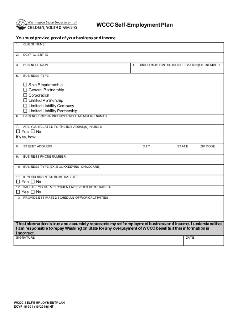 1.CLIENT NAME2.DCF CLIENT ID3.BUSINESS NAME5.BUSINESS TYPE4.UNIFORM BUSINESS IDENTIFICATION (FBI) NUMBERS ole Proprietorship