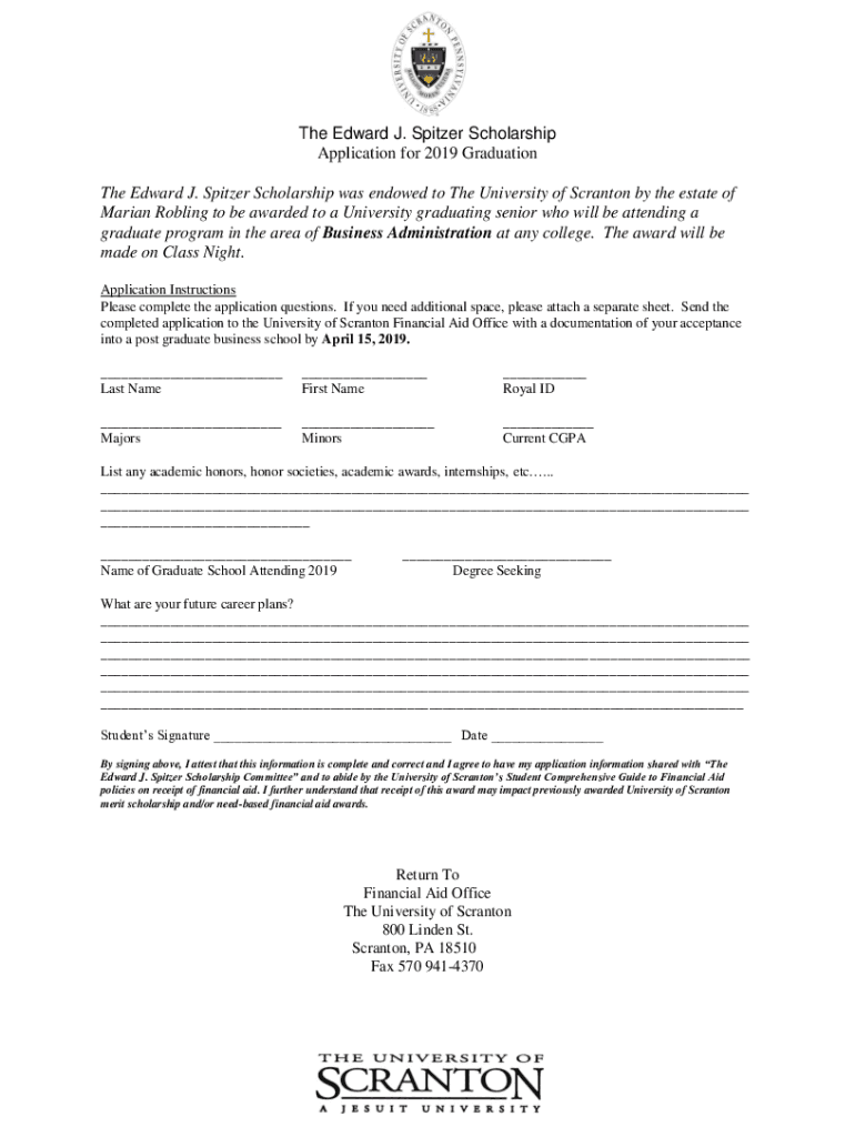 Get the free The Edward J. Spitzer Scholarship Application for 2019 ...