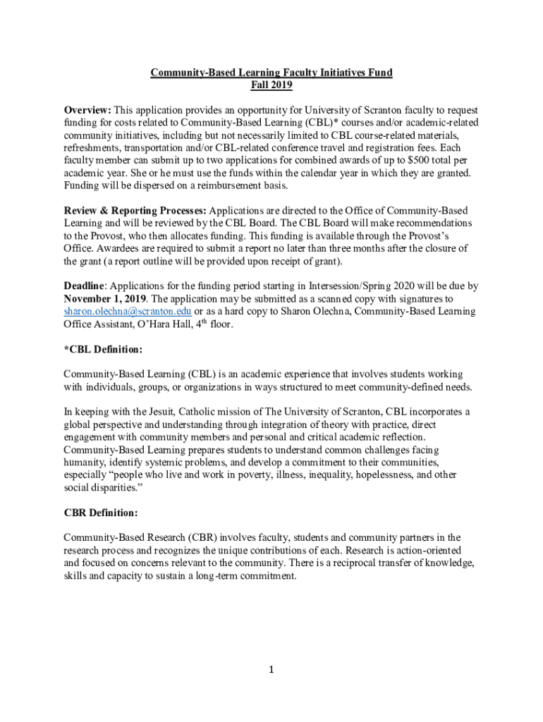 Get the free 1 Community-Based Learning Faculty Initiatives Fund Fall ...