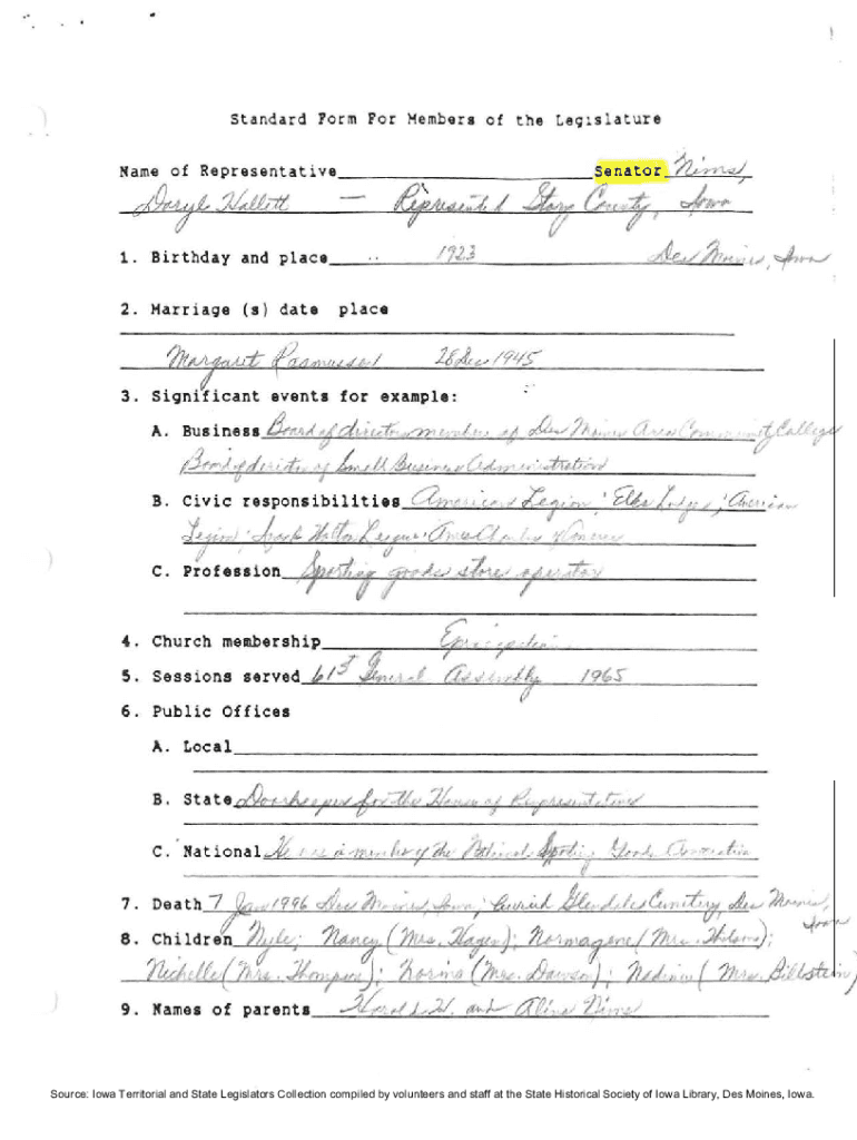 Get the free Form For Members of - Iowa Legislature