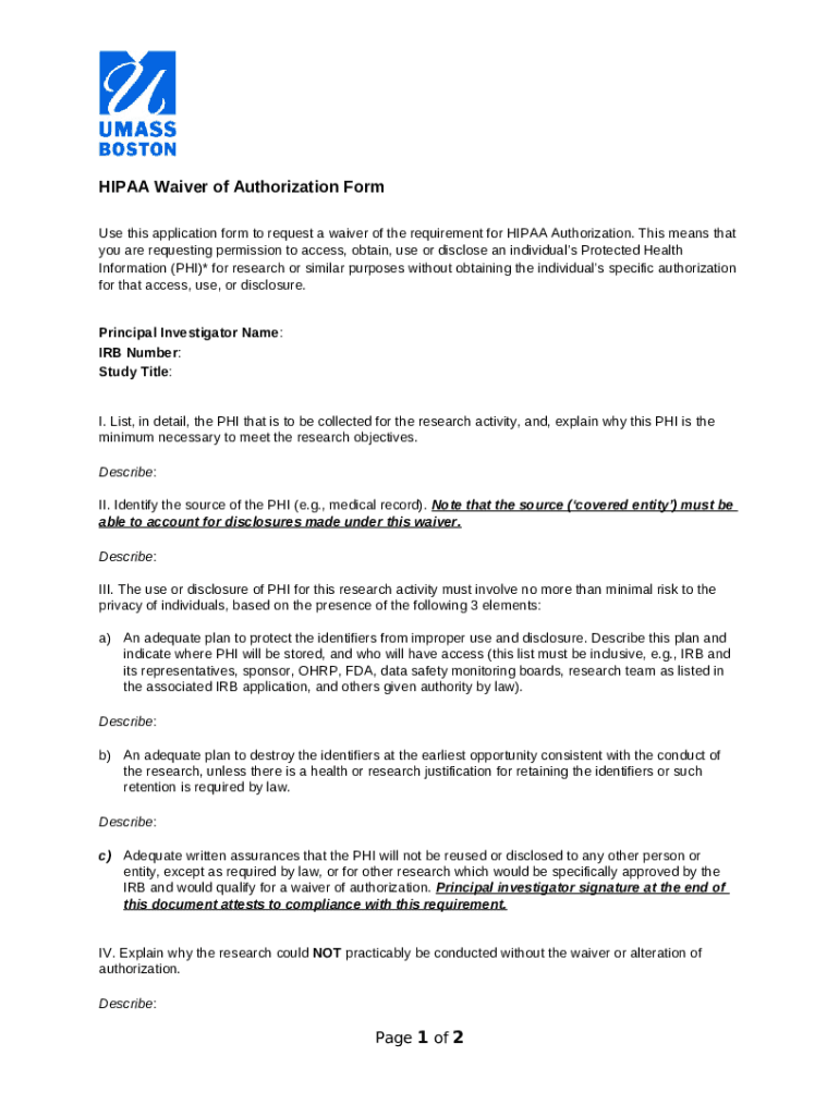 What is Waiver Request HIPAA Authorization Form?