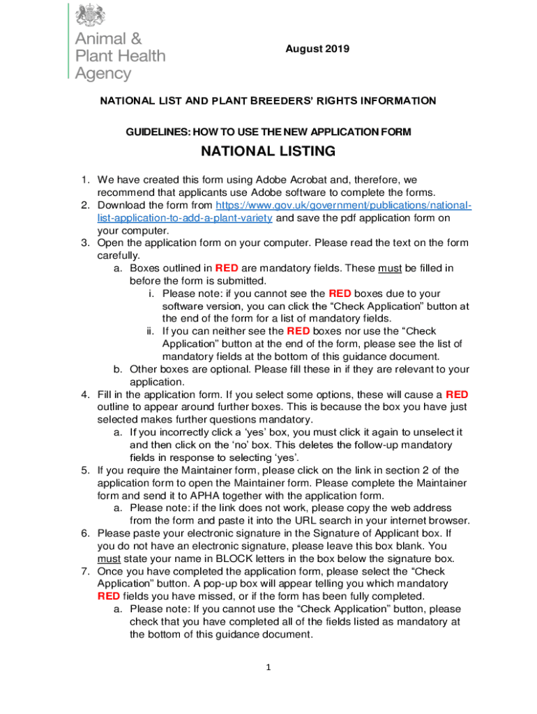 August 2019NATIONAL LIST AND PLANT BREEDERS RIGHTS INFORMATION