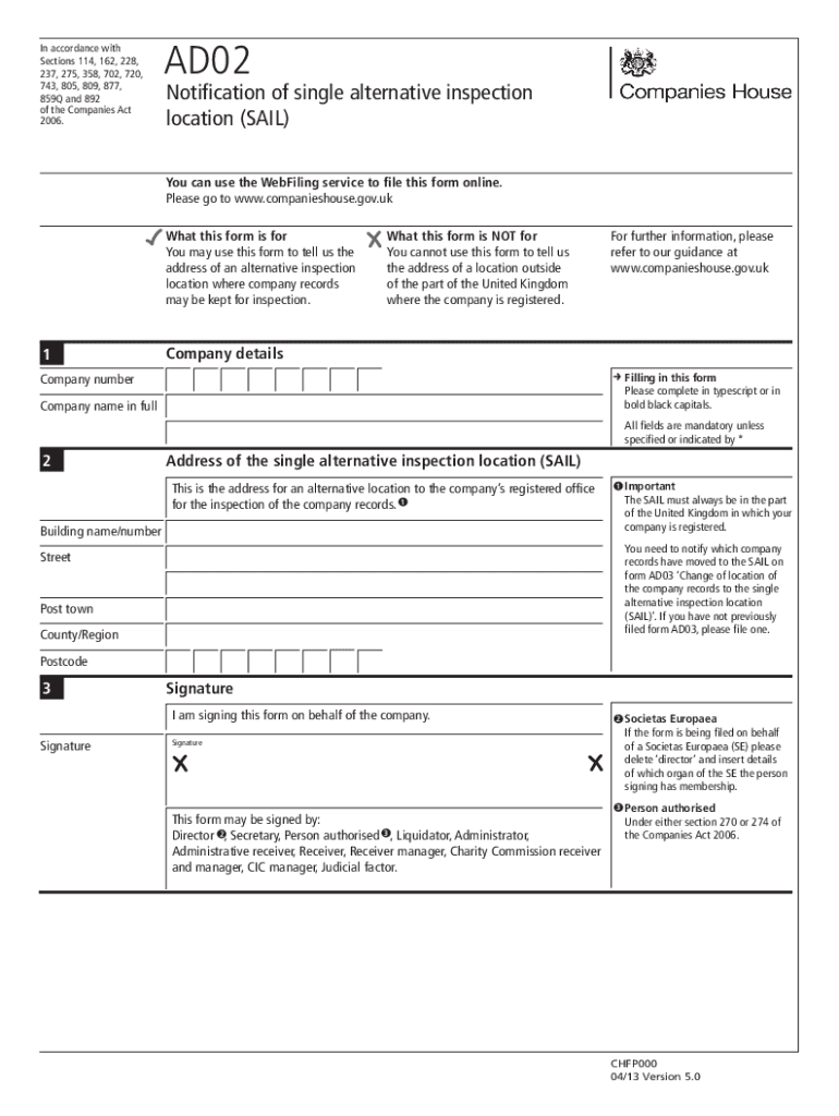 Get the free Register a single alternative inspection location (AD02) - GOV.UK
