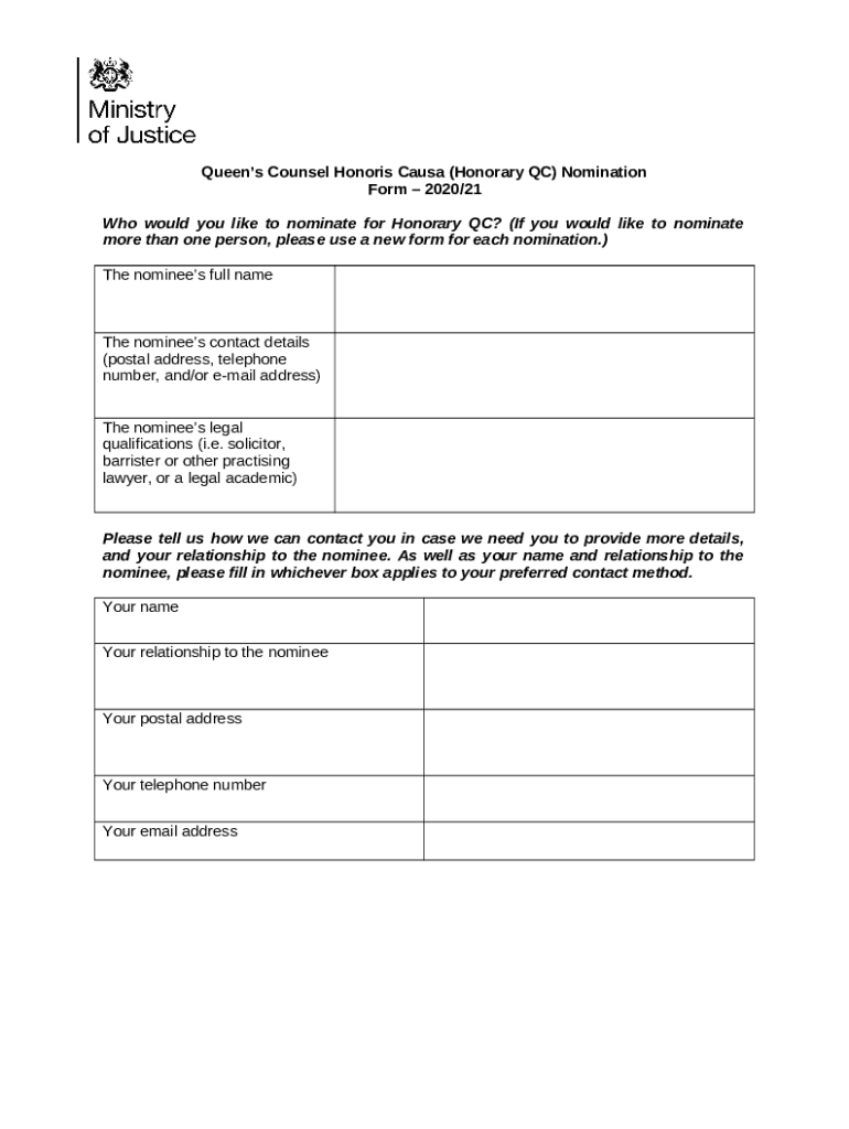 Instructions for the Nomination University Secretariat and Legal Counsel form