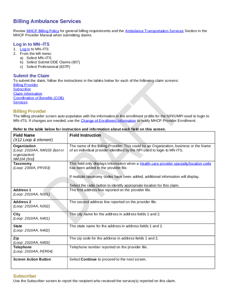 How should you fill out the Billing for Ambulance TransportsCMSBilling Policy - Billing the Recipient - dhs.state.mn.usMedicare Benefit Policy Manual - CMS template