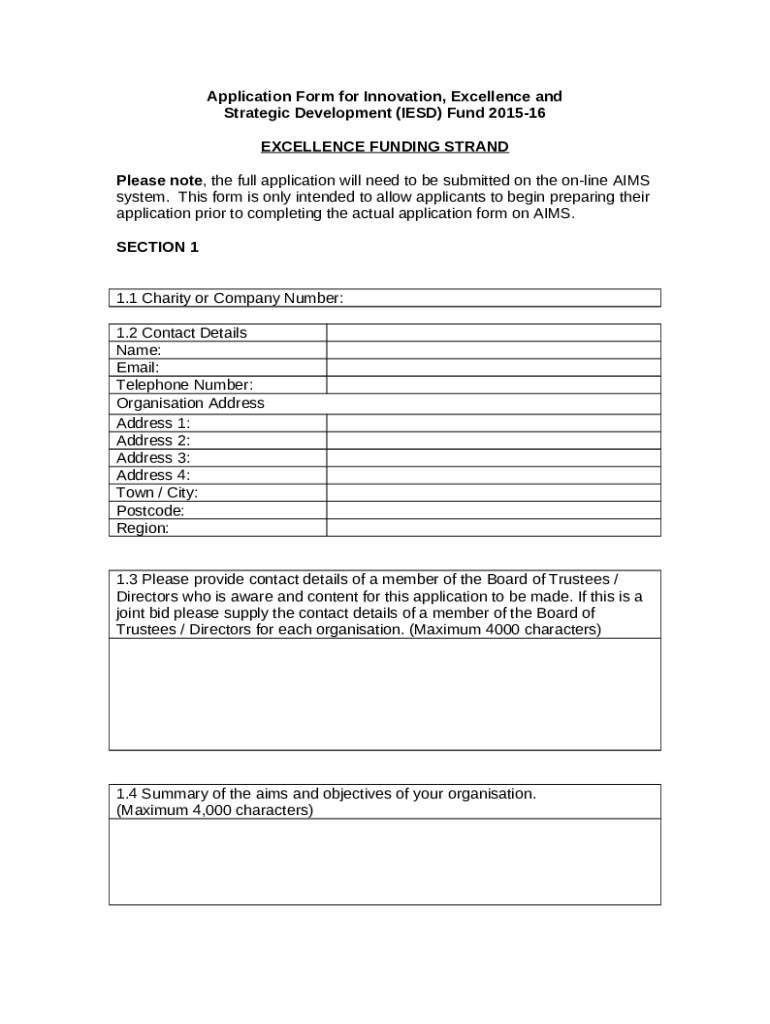 Application for Innovation, Excellence and - Gov.uk template instructions