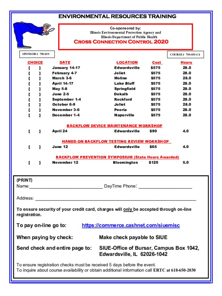 ENVIRONMENTAL RESOURCES TRAINING Cosponsored by: Illinois Environmental Protection Agency and Illinois Department of Public Health Cross Connection Control 2020 SPONSOR # 750035CHOICE COURSE # 750035C4DATE