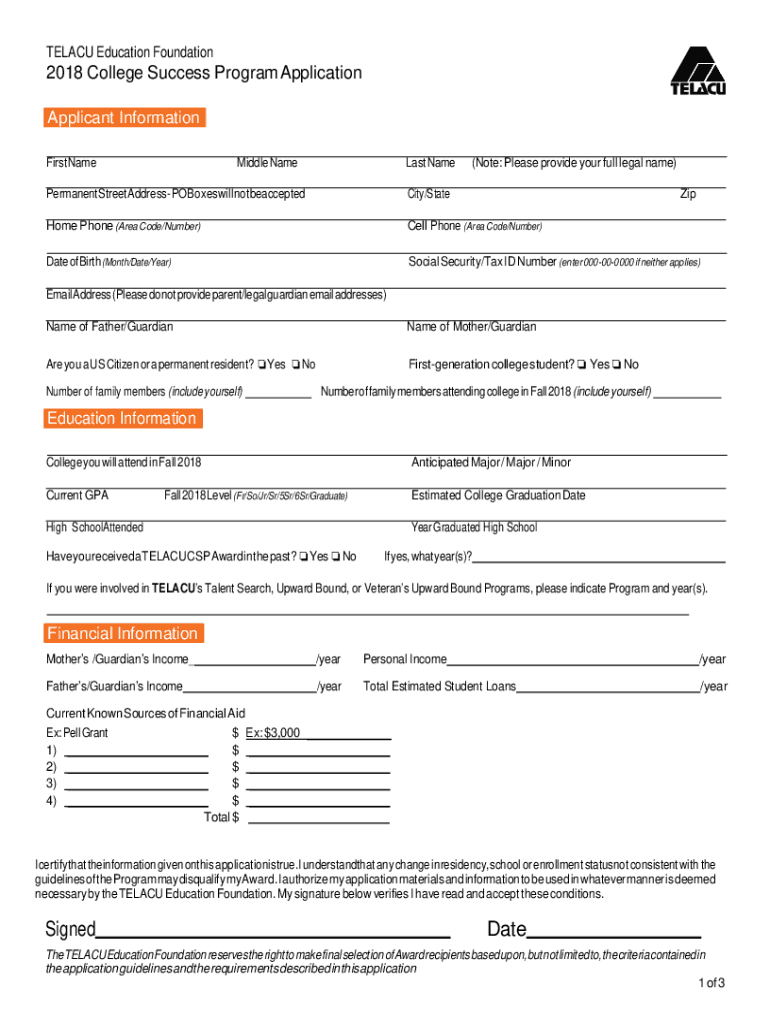 TEL ACU Education Foundation2018 College Success Program Application