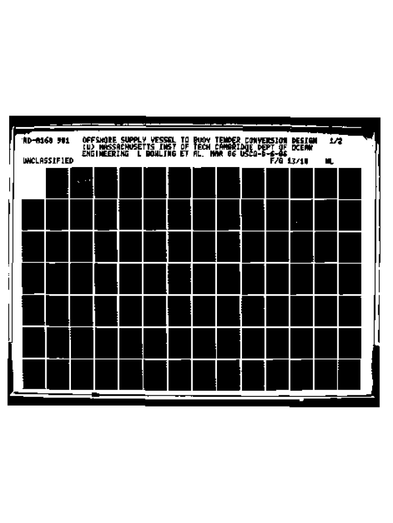 FiDA168 901 UNCLASSIFIEDOFFSHORE SUPPLY VESSEL TO BUOY TENDER CONVERSION DESIGN In2 (U) MASSACHUSETTS INST OF TECHCAMBRIDGE DEPT OF OCEAN ENGINEERING L BOWLING ET AL. MAR 86 USCGD6B6 F/0 13/10 MLmhh1hEh6Eoj.61111.25.