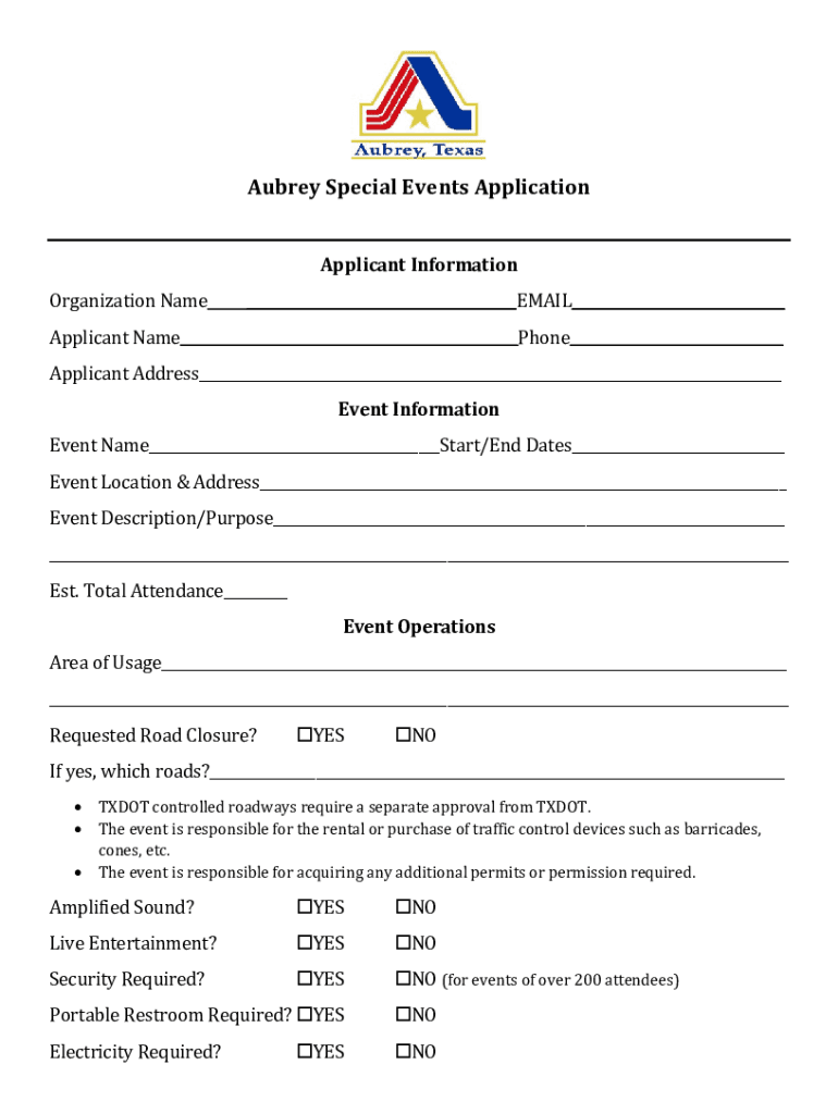 How to fill out aubrey special events application