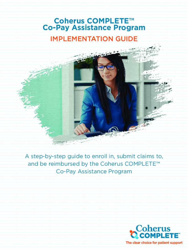 Coheres COMPLETE Copay Assistance Program IMPLEMENTATION GUIDE stepsister guide to enroll in, submit claims to, and be reimbursed by the Coheres COMPLETE Copay Assistance ProgramENROLLMENT PROCESS