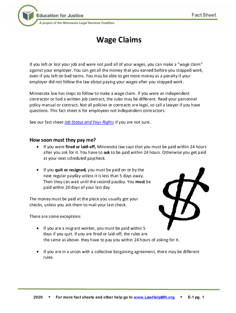 If you left or lost your job and were not paid all of your wages, you can make a wage claim