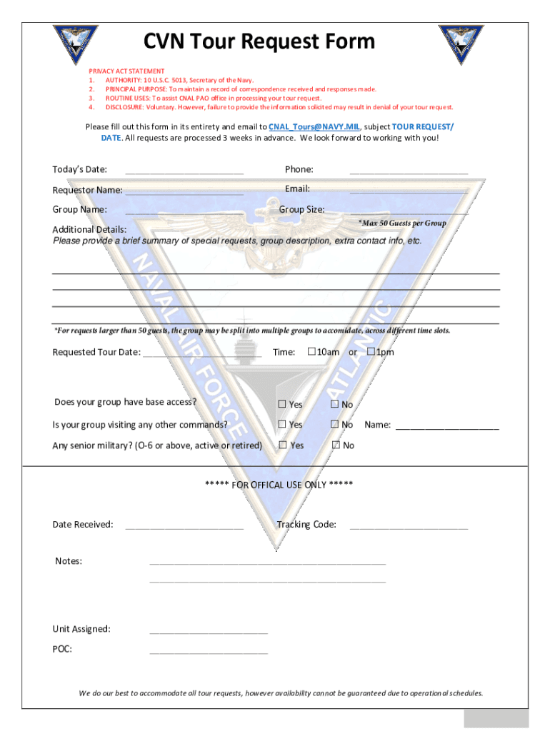 Cvn Tour Request Form is not the form you're looking for?Search for another form here.