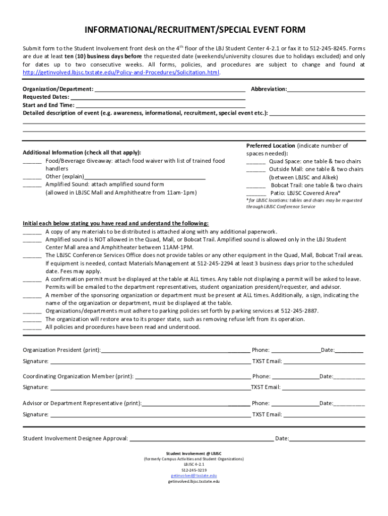 INFORMATIONAL/RECRUITMENT/SPECIAL EVENT FORM