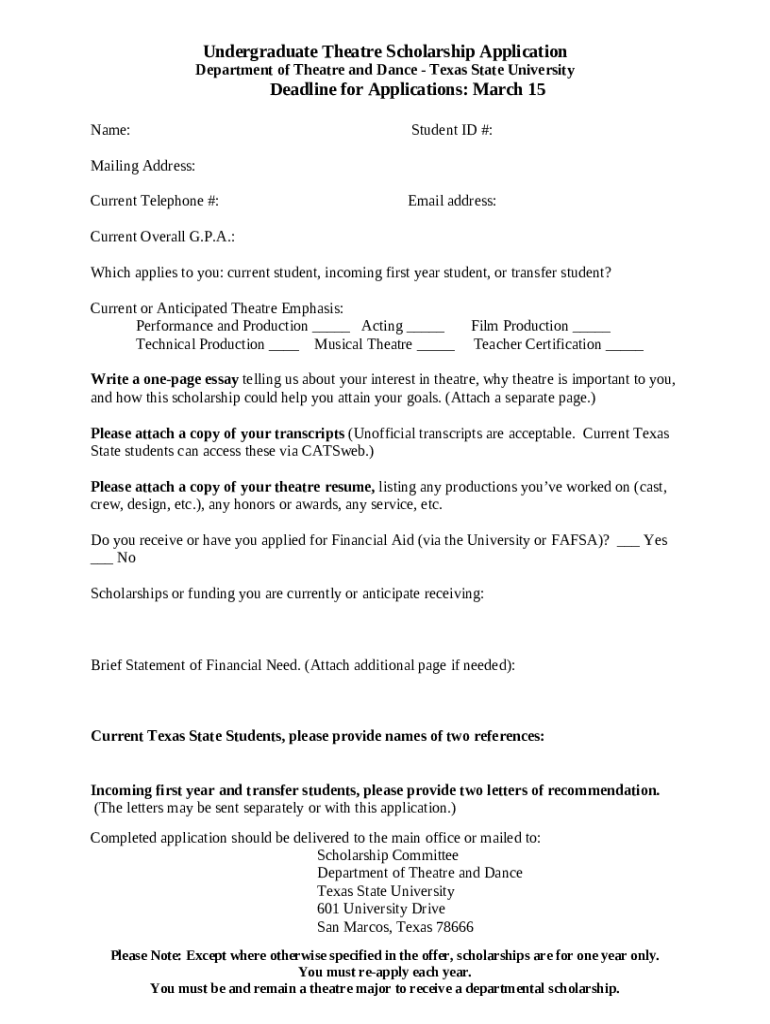 What is Apply : Department of Theatre and Dance : Texas State ... - gato-docs its txstate Form?