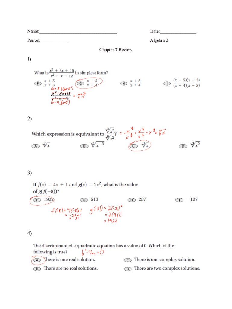 Get the free Name: Date: Period: Algebra 2 Chapter 7 Review 1)