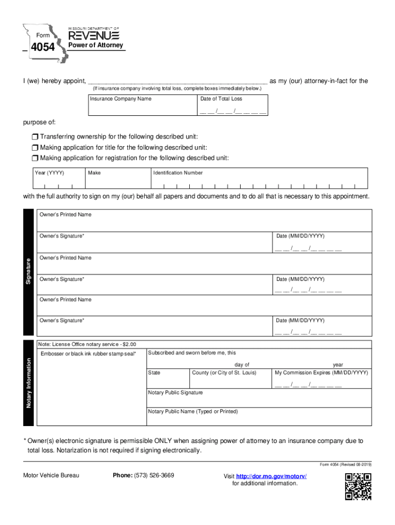 Get the free PDF Form 4054 - Power of Attorney - MO.gov - dor mo