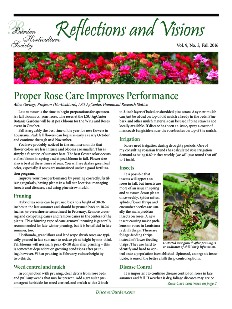 Society. 9, No. 3, Fall 2016Proper Rose Care Improves Performance