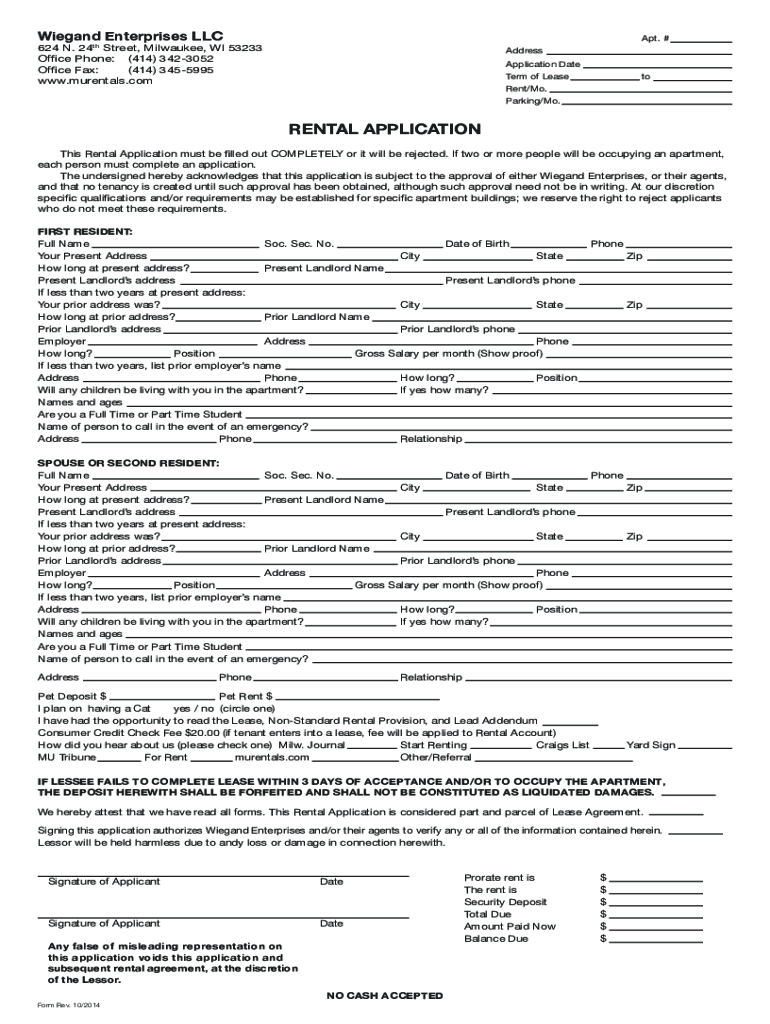 Anyone seeking to rent a property managed by Wiegand Enterprises is required to file the rental app.