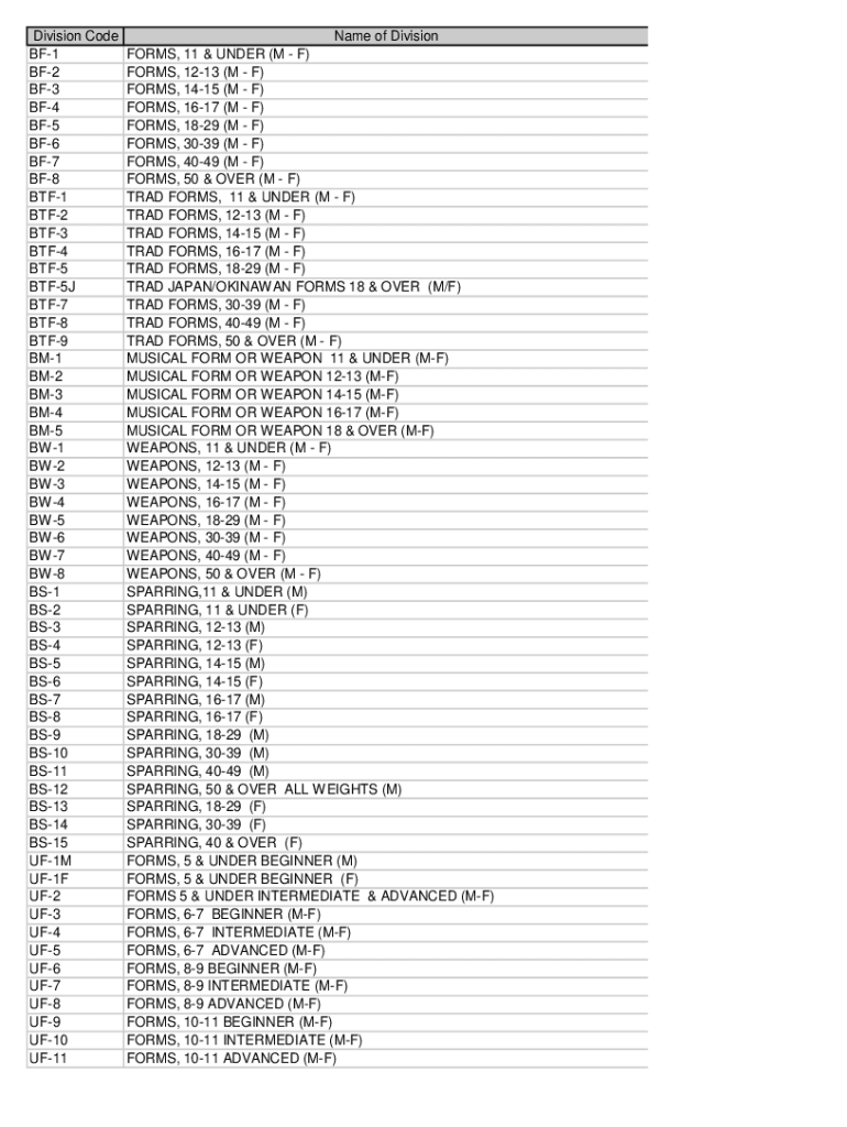 Get the free Division Code Name of Division BF-1 FORMS, 11 & UNDER ...
