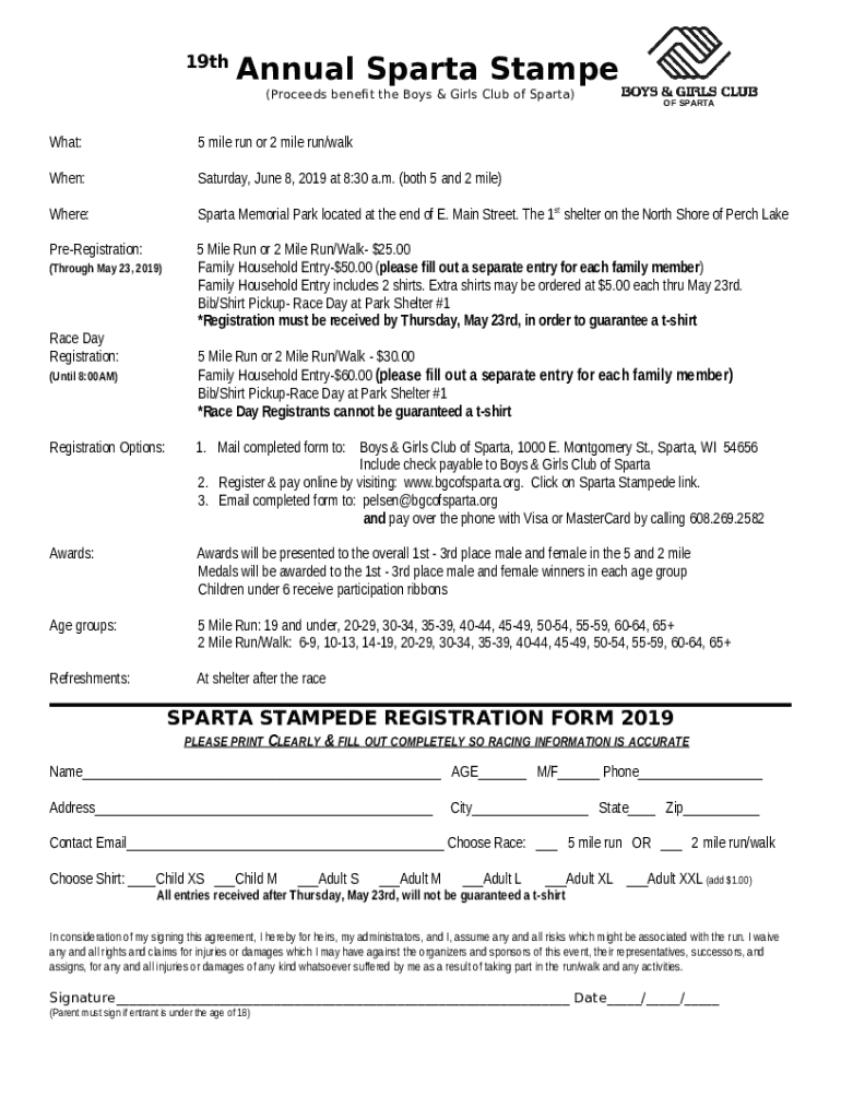 What is Sparta Stampede - Boys & Girls Club of Sparta Form?