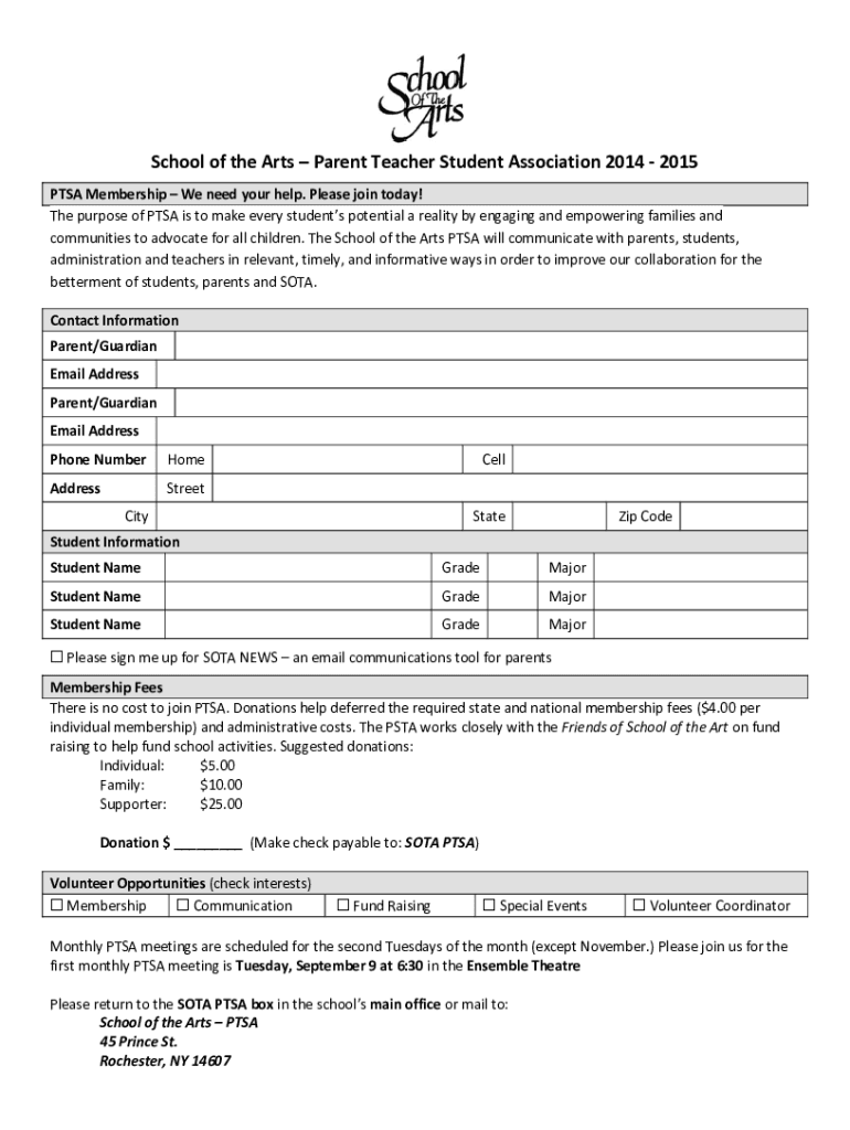 School of the Arts Parent Teacher Student Association 2014 2015 PSA Membership We need your help. Please join today! The purpose of PSA is to make every student's potential a reality by engaging and