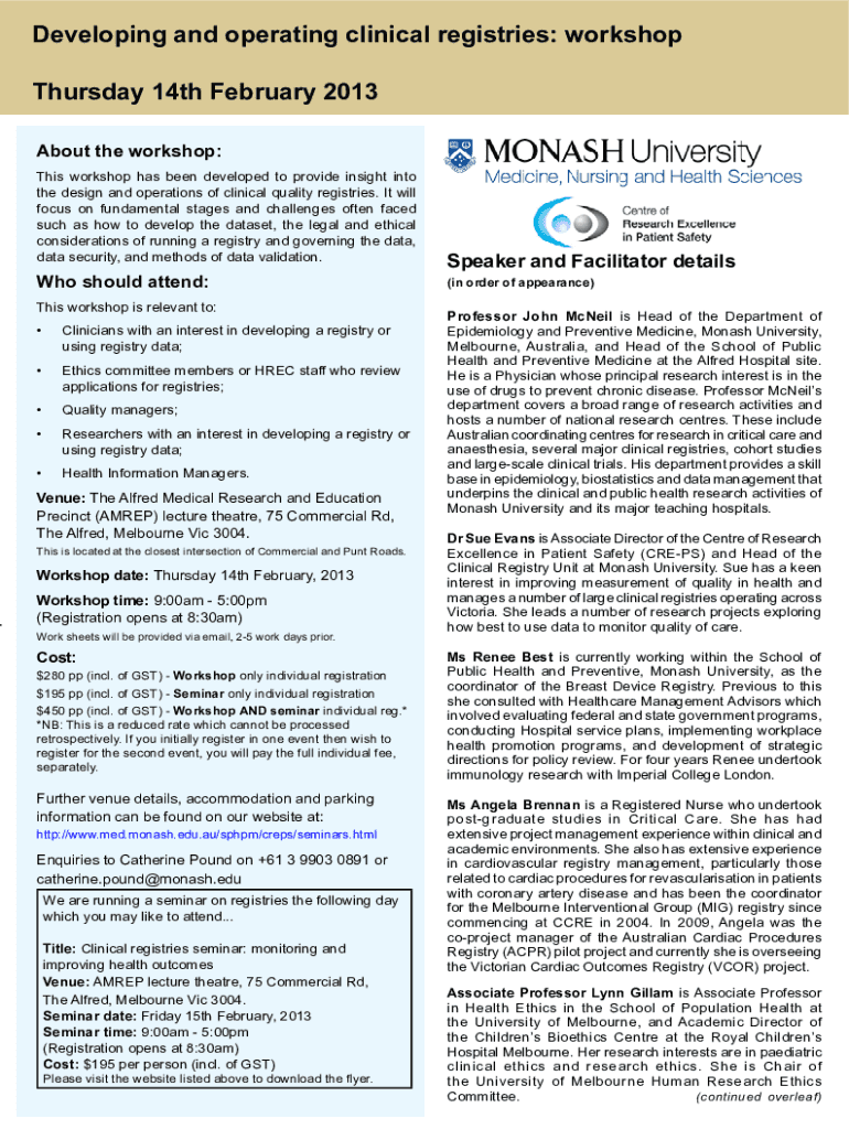 Get the free Developing and operating clinical registries - Monash University