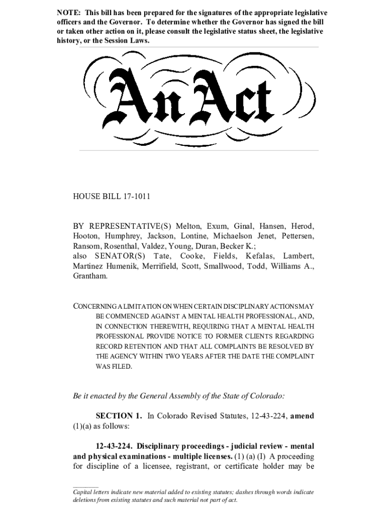 Get the free HOUSE BILL 17-1011