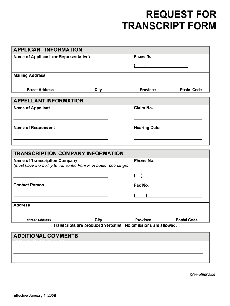 Access the Appeals Commission Request for Transcript Form online.