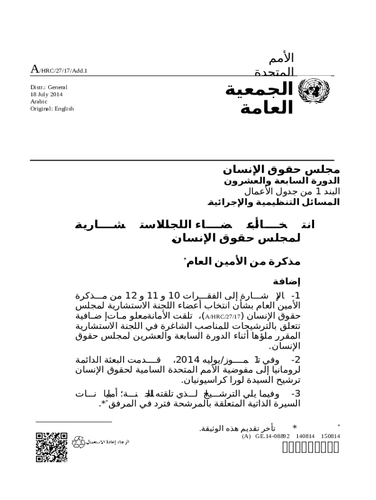 Template Addendum to the Election of members of the Human Rights ... instructions