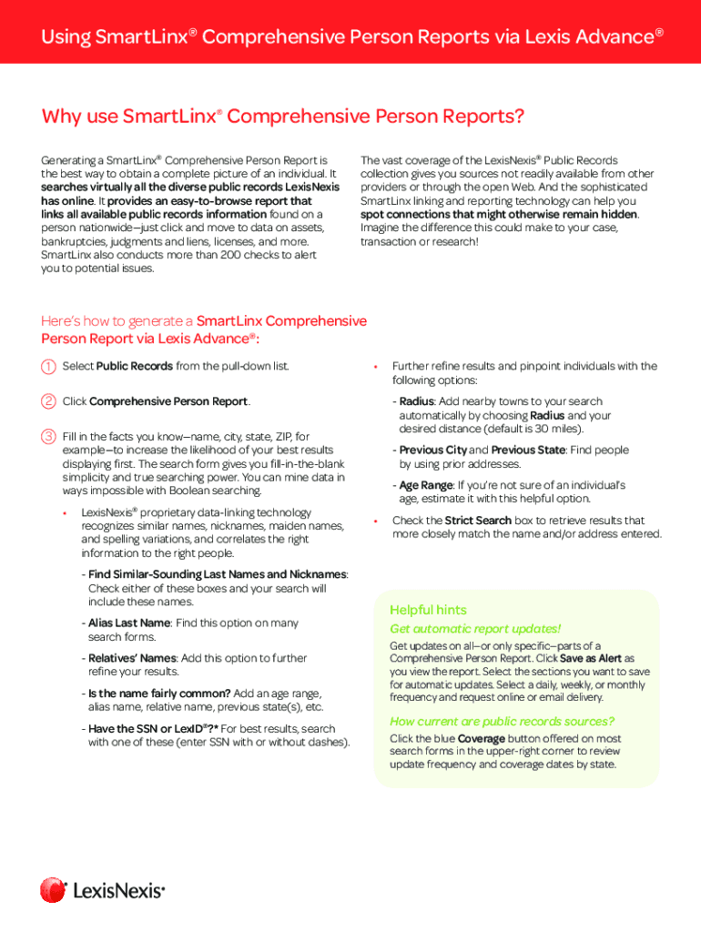 Get the free Using SmartLinx Comprehensive Person Reports via Lexis ...