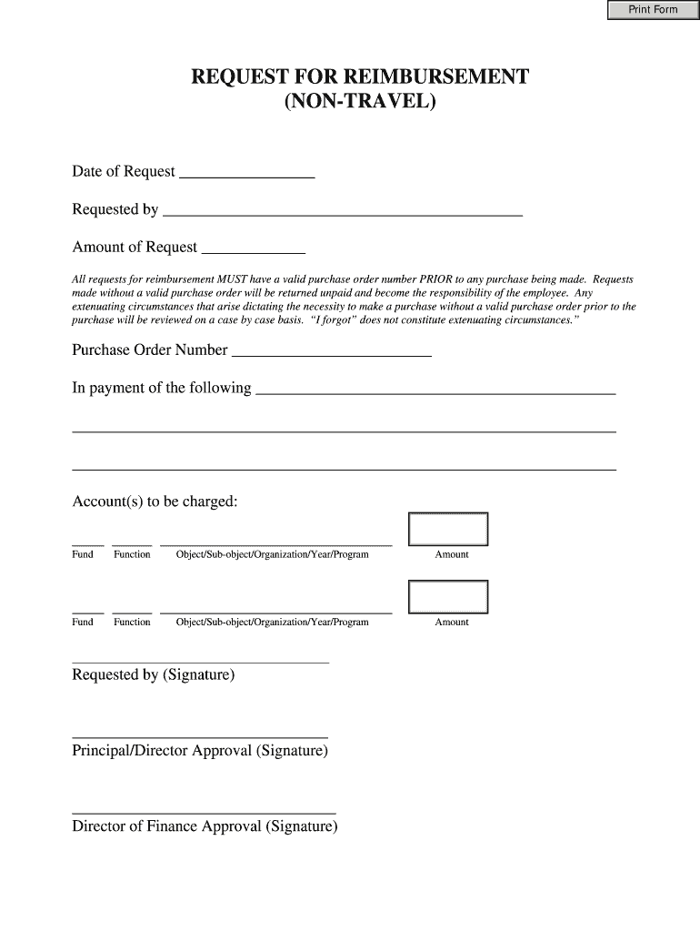 The Request for Reimbursement Form serves as a vital tool for employees to request reimbursement for non-travel expenses. It facilitates clarity and accountability in financial transactions. A valid purchase order number is crucial for processing, along with necessary signatures from appropriate authorities.