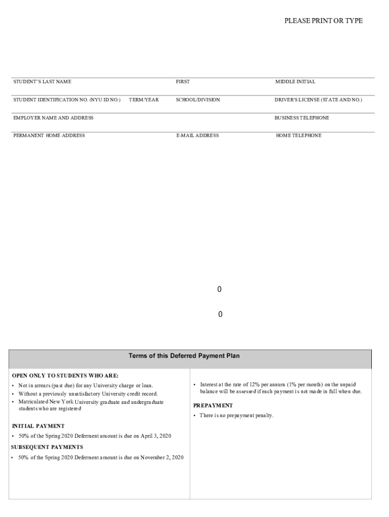 STUDENT IDENTIFICATION NO. (NYU ID NO.)TERM/YEARPLEASE PRINT OR TYPEPlease complete all sections,
