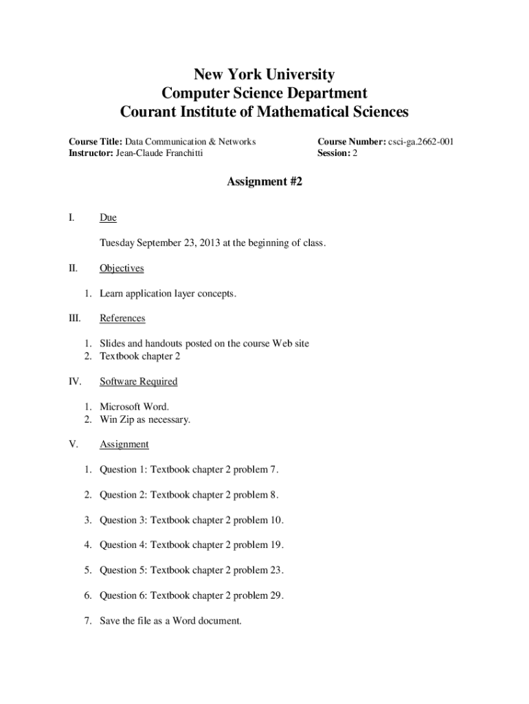 New York University Computer Science Department Court Institute of Mathematical Sciences Course Title: Data Communication & Networks Instructor: Jean-Claude FranchittiCourse Number: CSCA.2662001 Session: