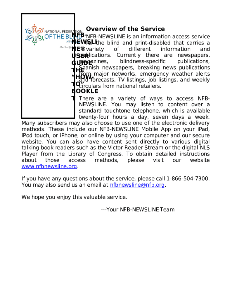 Frequently asked questions about the form The National Federation of the Blind and the National Library ...