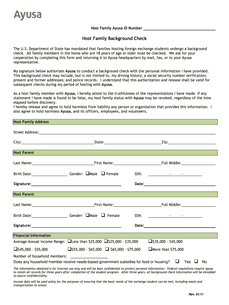 The Host Family Background Check Form is an essential document used by Ayusa to perform thorough background checks on families hosting foreign exchange students.