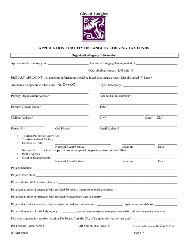 Get the free Online Langley Lodging Tax Fax Email Print - PDFfiller