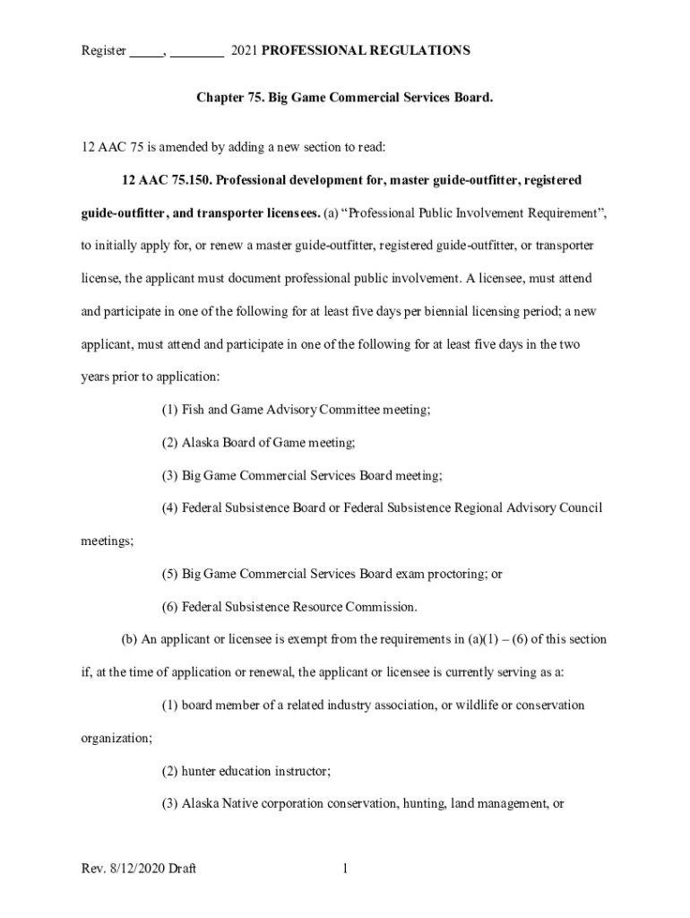 Register2021 PROFESSIONAL REGULATIONS, Chapter 75. Big Game Commercial Services Board.