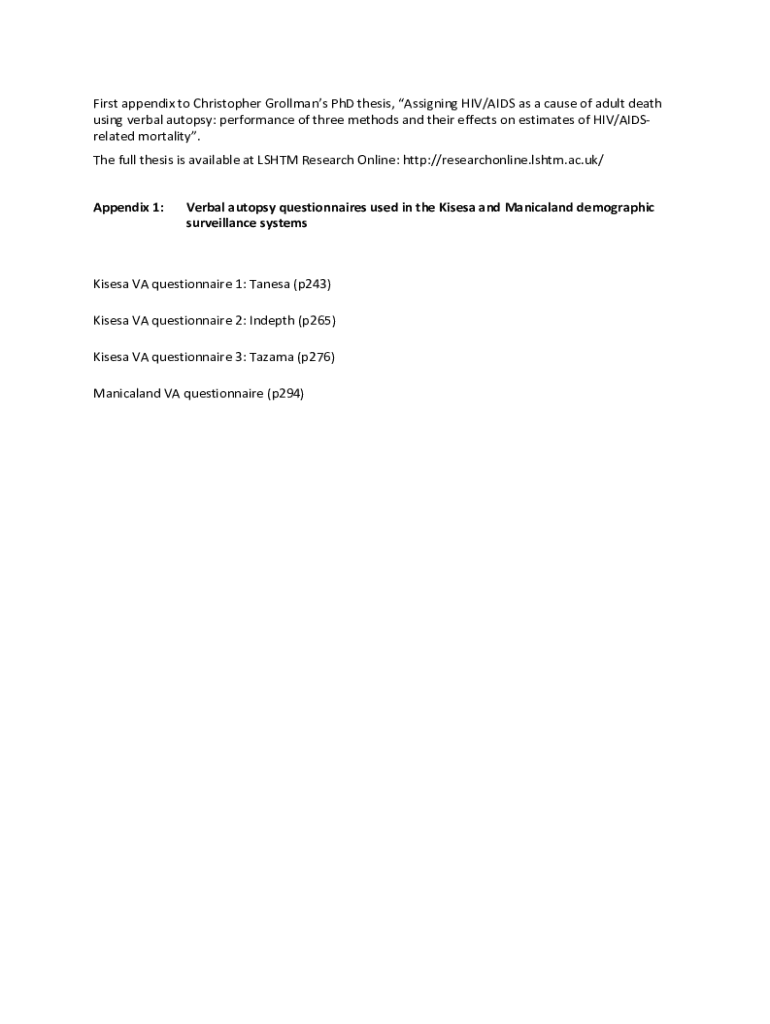 First appendix to Christopher Romans PhD thesis, Assigning HIV/AIDS as a cause of adult death