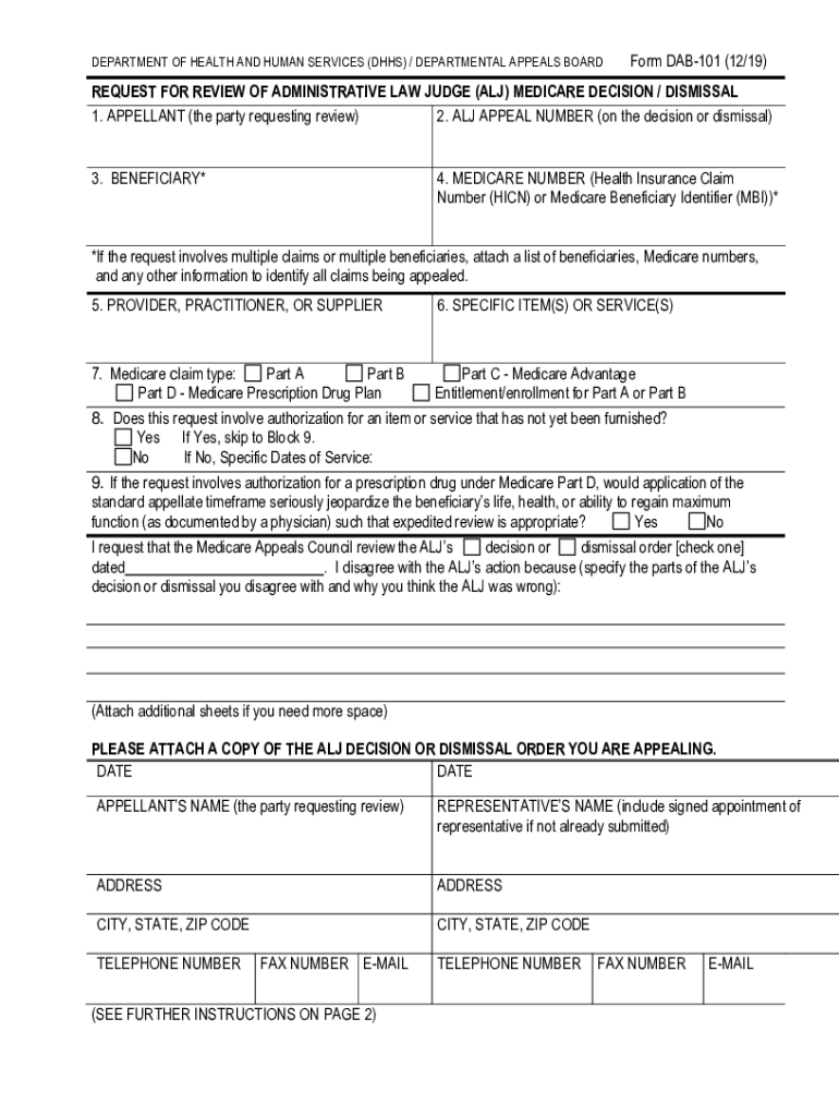 Get the free DAB-101. Request for Review of Administrative Law Judge (ALJ) Medicare Decision/Dism...