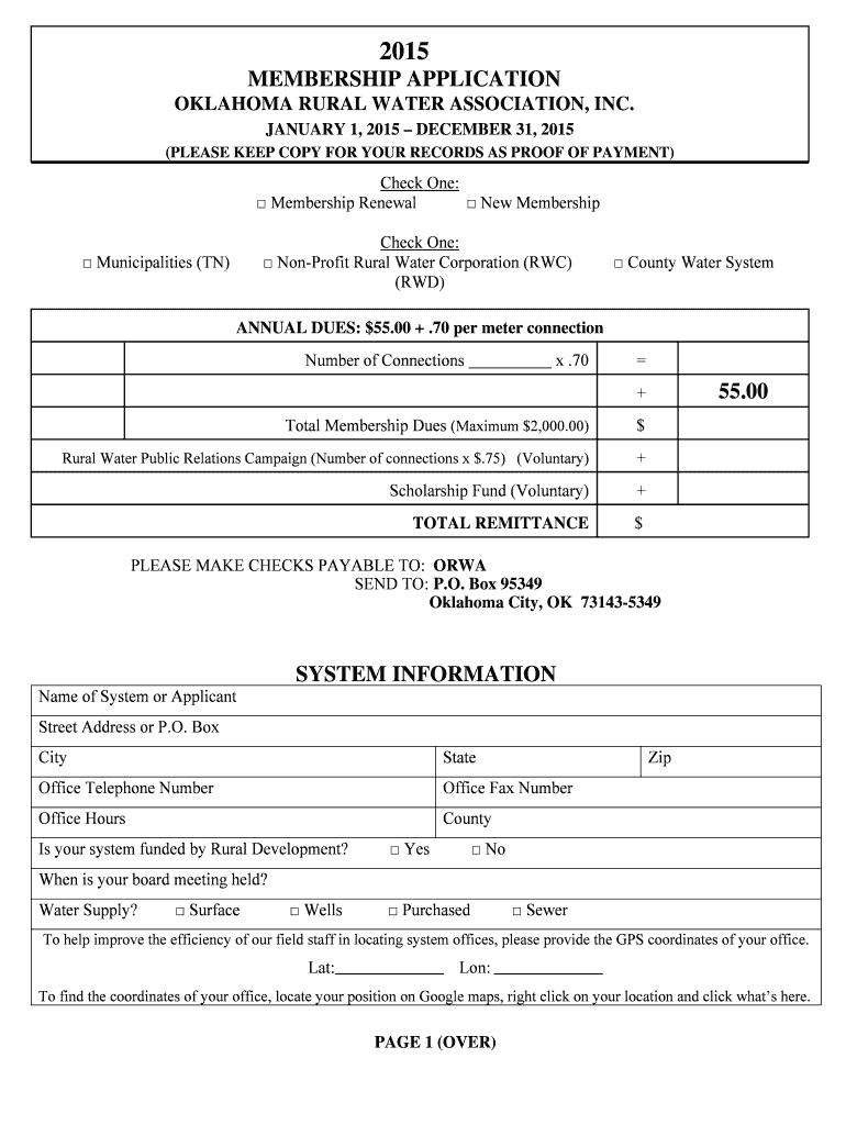 November 1, 2015, Dear System, According to our records, you are not a current member with the Oklahoma Rural Water Association. We hope that you are satisfied with the services provided by ORA and